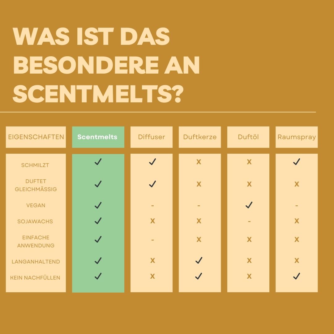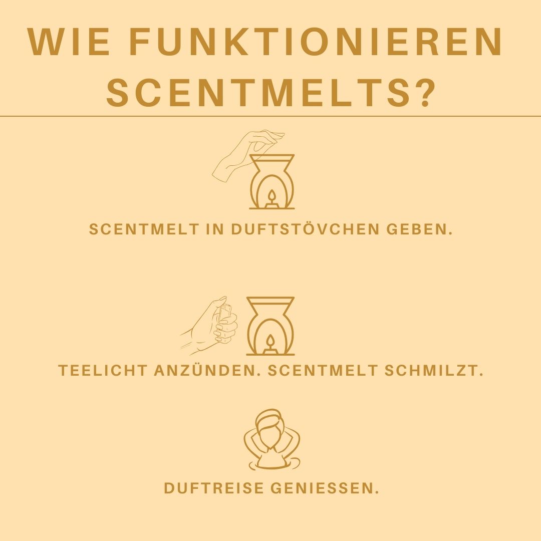 🧡 Verwende Scentmelts in unbelüfteten Räumen nicht länger als zwei Stunden am Stück. Ein Scentmelt eignet sich für zwei Duftreisen und duftet insgesamt bis zu ca. vier Stunden.